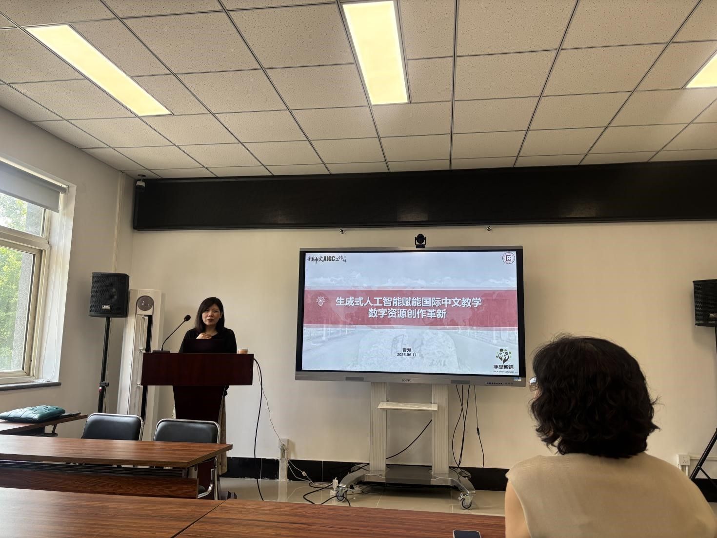 在学院报告厅成功举办了主题为“智能教育时代的国际中文教学革新——从AIGC工具应用到智能体开发”的工作坊。本次特邀手里中文CEO曹芳担任主讲嘉宾,学院副院长江傲霜主持,吸引了学院众多师生积极参与。