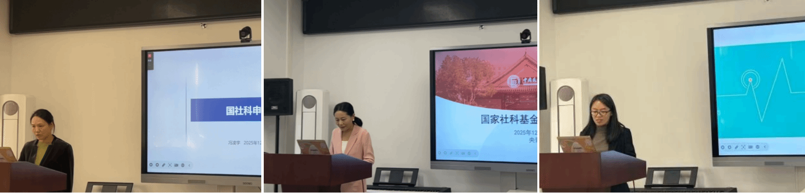 2025年获批国社科一般项目和青年项目立项的冯凌宇、央青和袁萍老师分享了申报经验。冯凌宇老师回顾了近三年国际中文教育方向的申报情况,强调了坚持不懈、长期积累和关注现实需求的重要性。央青老师从前期准备、选题打磨与评审反馈等方面交流了申报体会。袁萍老师以“恒、准、精”三字概括了她的申报心得。