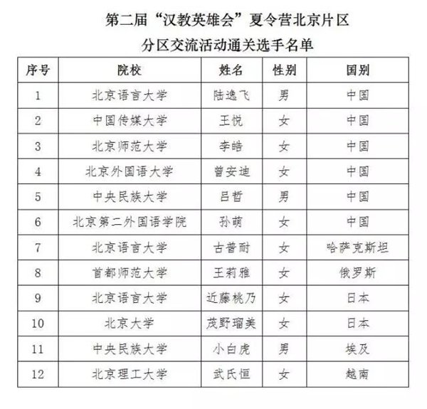 经过前期海选,北京片区交流活动共有来自北京地区10所高校的61名中外选手进入到现场比赛阶段。情色小说