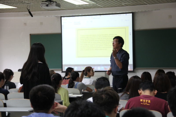 黄教授首先介绍了OPI的由来和测试方式。OPI中文考试侧重于对学习者当前中文口语能力的考察。与一般测试不同的是,在OPI中,测试者不会提前预定测试题目,而是通过提问,与被测试者进行对话来完成测试。黄教授给同学们播放了一段OPI中文考试的现场录音。通过这段录音,同学们对OPI中文考试有了直观的感受,也对OPI考试的方式和流程有了更加深刻的认识。黄教授结合录音,重点讲解了OPI考试中口语水平的划分标准,并介绍了考试中测试者提问的依据和方式。最后,同学们就OPI中文考试和HSK所存在的差异展开了多方面的提问,黄教授一一进行了详细地回答。