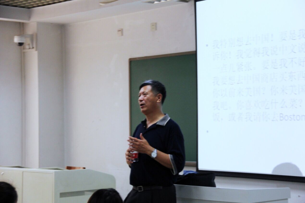 此次讲座的题目是“电脑化中文教学”。讲座伊始,冯教授和同学们分享了自己对于对外汉语教师使命的看法,“让汉语在10年到15年内成为继英语之后的第二大国际语言”,同学们备受鼓舞 。与以往的讲座不同,冯教授以讲解一堂中文教学实例的方式,向同学们展示了电脑化中文教学在布兰戴斯大学中文课堂中的应用。冯教授指出,该模式是何文潮和谢天蔚提出的教学方法的有机结合,在教学实践中已经取得了良好效果。在使用该教学模式的汉语课堂中,汉语学习者按照已给拼音在电脑上输入汉字进行学习,可以实现汉字音和形之间的结合,达到快速认字的效果,节省时间,提高学习效率,久而久之熟能生巧,写字和运用便水到渠成。讲座最后,同学们与冯教授展开了积极的问答互动,对电脑化中文教学有了更加深刻的认识。