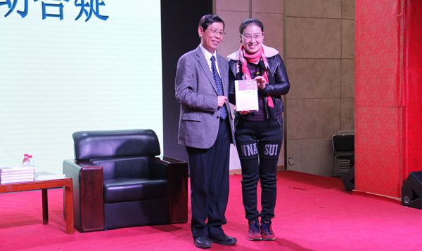 在接下来的“现场互动答疑“环节,同学们热情参与,积极发言,提出了很多有深度有思想的问题,更有一些“幸运儿”凭借自己优秀的专业素养以及对崔教授的了解,获得了崔教授亲笔签名的精美图书,愉悦与激动难以言表。获得签名书的同学还和崔希亮教授进行了亲密的合影。