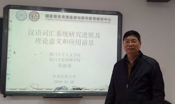 苏新春教授是厦门大学嘉庚学院人文与传播学院院长,国家语言资源监测与研究教育教材中心主任,国家语委词汇规范化标准委员会委员、中国辞书学会常务理事,主要从事语言学与应用语言学研究,主攻词汇理论与辞书语言、教材语言的计量研究,主持国家社科基金、教育部社科、福建省社科课题多项,出版专著20多部,发表论文150多篇。
