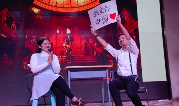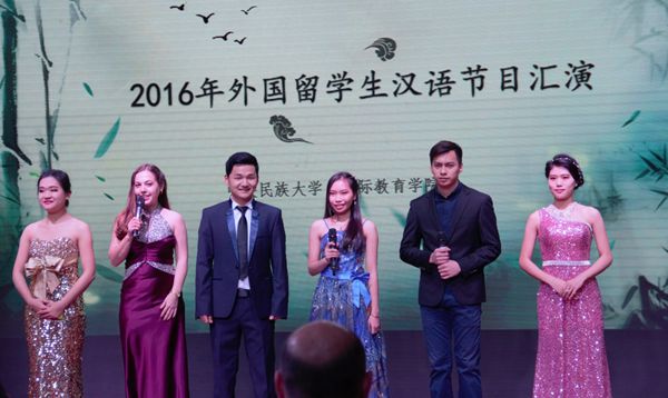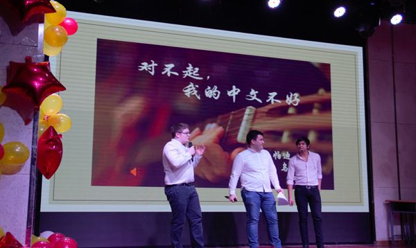 首先隆重登场的是优秀的主持人团队,他们分别是两名汉语国际教育硕士和来自不同国家的留学生。主持人以流利的汉语和动听的声音向我们宣布了演出的开始。