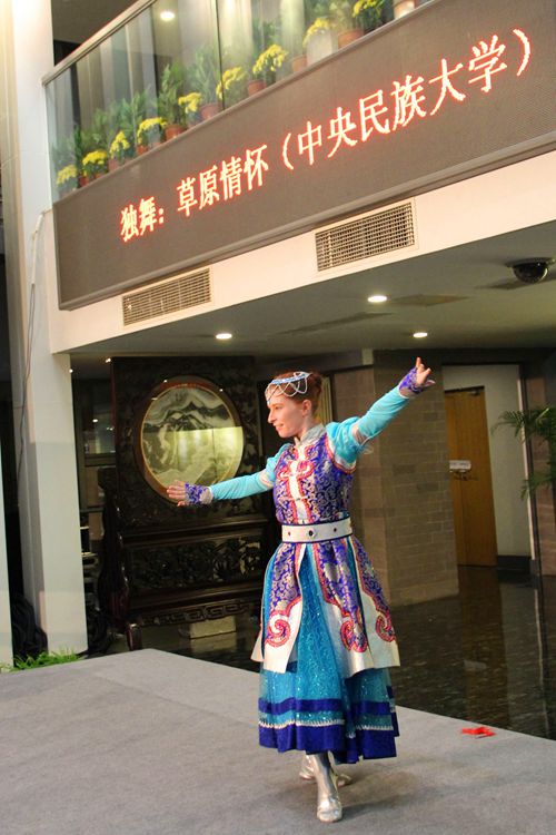 学生参演了其中的三个节目。日本学生臼井麻耶奉献了精彩的二胡独奏《赛马》,美国学生艾丽表演了韵味十足的蒙古舞《草原情怀》。晚会的压轴节目是由情色小说