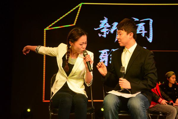 小品《新闻联播》在迎新汇演中的表演