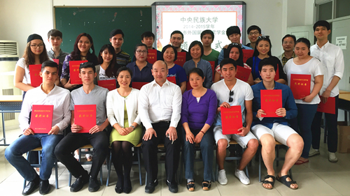 2014-2015年度北京市外国留学生奖学金集中评选工作,通过自主申报、书面评审、评审组评审等环节,最终共有30名品学兼优、各方面表现突出的学生获得奖学金,获奖学生来自美国、韩国、泰国、乌兹别克斯坦和吉尔吉斯斯坦等11个国家,涉及5个学院6个专业,涵盖本科生(23名)、硕士生(1名)和博士生(6名)。