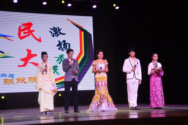 来自五个学院的主持人穿着各具特色的民族服饰