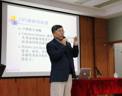 专门研究语言测试的罗莲老师,简明扼要地回答了白教授提出的问题并介绍了国内外语测试的现状。白教授指出测试是个指挥棒,测试的内容就是学生学习的重点,因此测试是教学中十分重要的一部分。接下来白教授条理请晰地为大家介绍了Aptitude Test、Proficiency Test、Placement Test、Achievement Test四种测试类型,并通过图表向大家呈现语言测试在教学流程中的位置和作用。在介绍美国标准化测试过程中,白教授为大家重点介绍了OPI测试的相关内容,主要包括:OPI测试的性质;OPI测试所关注的四个方面;OPI测试程式;OPI分级标准四部分。之后他还从考题、评分标准和答案及点评三个方面阐述了近几年的新发展。