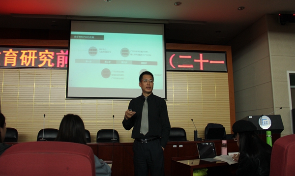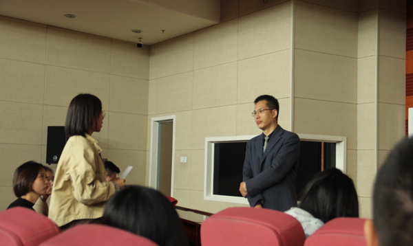此次讲座主题为基于产出导向法的国际汉语教学新探索。此次讲座详细介绍了“产出导向法(production⁃oriented approach,POA)”及其应用于国际汉语教学实验简况,从此方法应用于教学的原因、目标、过程、所达成效果以及探索反思进行了全面分析与交流。首先,朱勇副教授提到POA教学法本是北京外国语大学文秋芳教授团队构建的,适合中国中高级外语学习者特点的创新教学方法,而将其引入到国际汉语教育当中主要是本着开放、学习以及支持原创性教学理论的心态用以解决二语学习者学用矛盾的问题,其过程大致分为三个阶段:驱动、促成和评价,它的主要特点是:创造饥饿感,激发学生学习愿望;选择性输入,有效服务产出目标;师生合作,以评为学。其次,朱勇副教授从教学对象、教材改变、练习改编、结果反馈等对POA应用于教学的试验情况方面做了详细的解释说明。最后,朱勇副教授与在场学生和老师分享了POA实验过程中的问题与不足以及对策,并鼓励大家在学习及教学中善于思考,善于利用资源,不断提升学习及教学能力。
