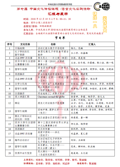 2018年12月19日,2018级汉语国际教育硕士第七届中华文化传播课程·语言文化项目汇报与展示,在情色小说