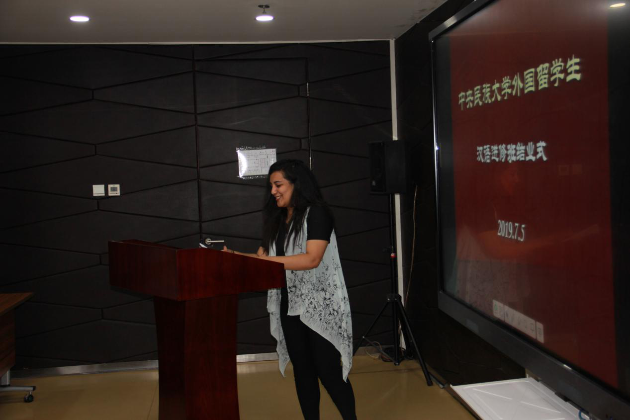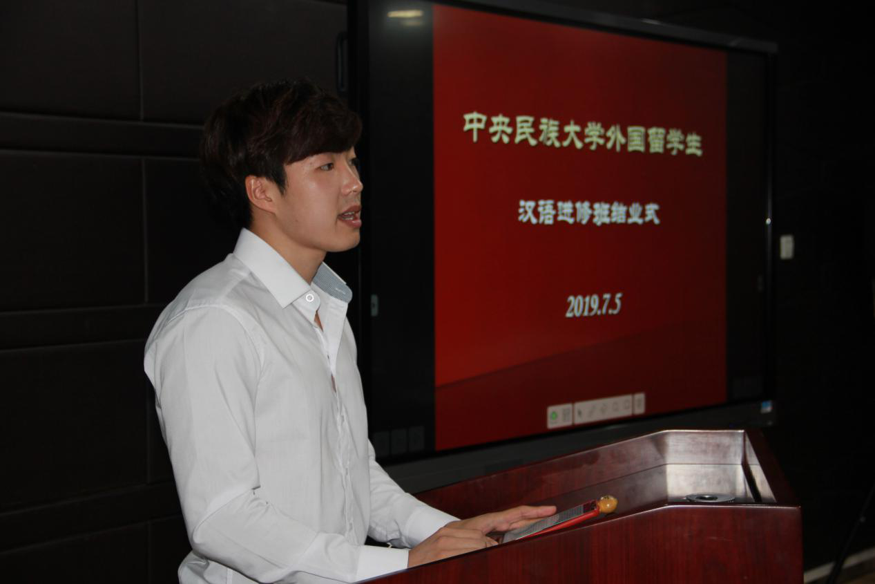 买力克老师首先介绍了出席本次结业式的领导和老师,并向来自韩国、日本、哈萨克斯坦、爱尔兰、埃及、津巴布韦、土耳其、乌兹别克斯坦、意大利等14个国家共49位结业的国际学生表达了祝贺。接下来,两名学生代表分别发言,表达着他们对学院和老师的感激和不舍之情。