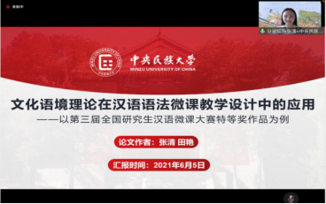 在“汉语教材与课堂教学研究”分论坛,张清同学报告了与田艳老师的研究《文化语境理论在汉语语法微课教学设计中的应用》。张清同学从文化语境理论的内涵、文化语境理论与汉语语法教学、文化语境理论指导下的汉语语法微课设计模式三个方面对文化语境理论应用于汉语微课教学设计进行了重点阐述。在交流讨论环节,北京大学对外汉语教育学院姚骏副教授就张清的论文和报告进行了点评,姚骏副教授充分肯定了微课研究选题的创新性和实用性,也对运用文化语境理论分析微课设计的研究视角颇为赞赏。此次报告对于丰富汉语教学界对于微课教学以及汉语微课设计理论的研究具有一定的促进作用。