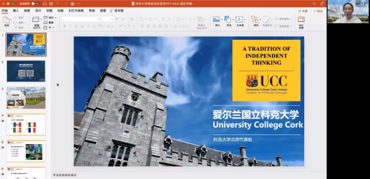 王老师线上向同学们介绍爱尔兰国立科克大学