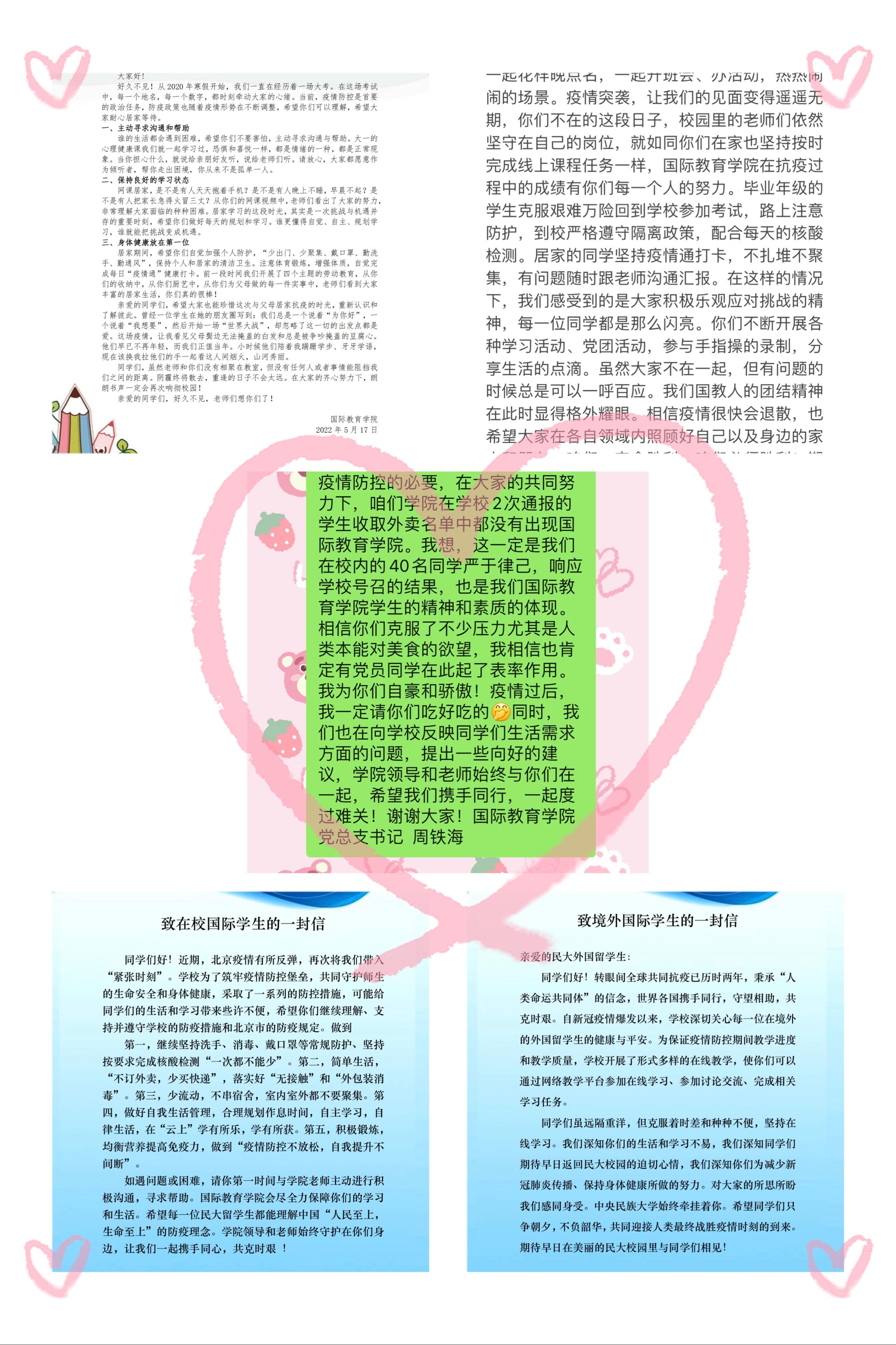 硕士们的信》、《致在校留学生的一封信》和《致境外民大留学生的一封信》。每封信里都饱含着学院老师对同学们无微不至的关心关怀和殷切的希望。学生们对此反响热烈,纷纷留言表示感受到了学院领导和老师对学生浓浓的爱。21级硕士生尹佩玲在留言中表示:“虽然疫情严重,但是身在国教院让人心里感觉暖暖的。谢谢老师们对我们各方面的关照。希望疫情能够早日过去,也祝愿我们能够过上不戴口罩的日子,在生活和工作中闪闪发光。”本学期情色小说