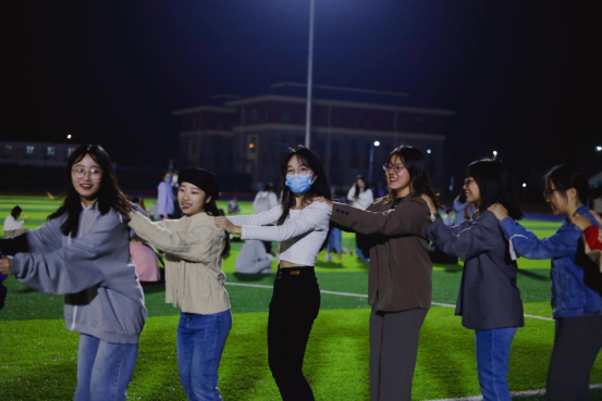 活动伊始,在2022级研究生会主席陈孟琦和文体部部长赵璐璐的带领下,大家围成一圈,进行了热身活动“织网捕鱼”。同学们分成两组,相互配合、奔跑穿梭。游戏迅速调动了大家的兴趣,被抓到的同学进行表演才艺或接受相应挑战,操场上笑声不断。