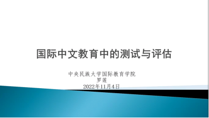 罗老师以“国际中文教育中的测试与评估”为主题开展讲座。她首先通过选择题进行互动,引发大家对“考试”的思考,介绍了语言测试学科的历史发展,强调成为一名合格的国际中文教师需要学习语言测试课程。之后,她邀请美国霍华德大学林佳老师录制视频,为同学们介绍了国际中文教育专业在海外的相关信息和需求以及本专业学生未来工作与研究的方向。最后,罗老师邀请了本院2019届硕士毕业生赵川学姐以视频连线的方式向同学们讲述她在国内外从事中文教育的经历,展示了教学成果,并分享了收获和建议。同学们纷纷表示感到收获颇丰。