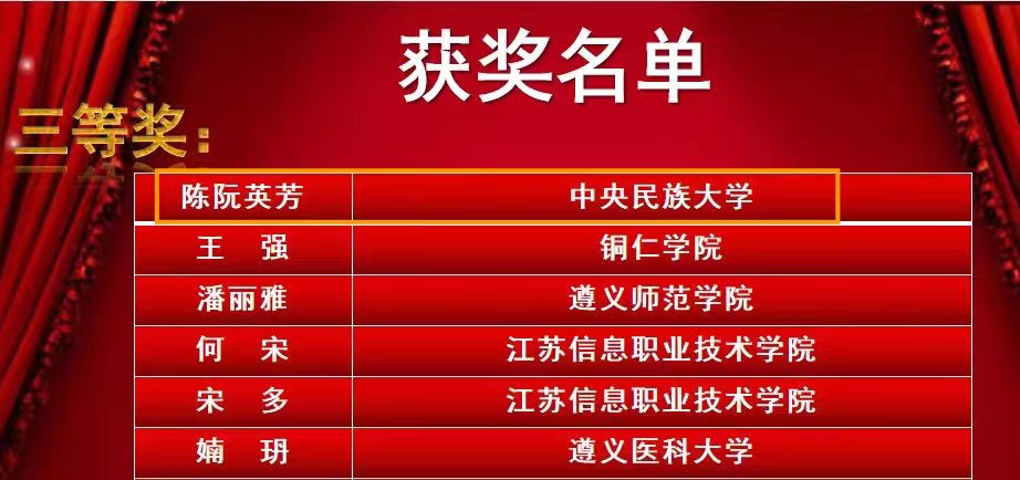 的越南留学生陈阮英芳(ANH PHUONG)在比赛中荣获三等奖,田艳老师荣获“优秀指导教师奖”。