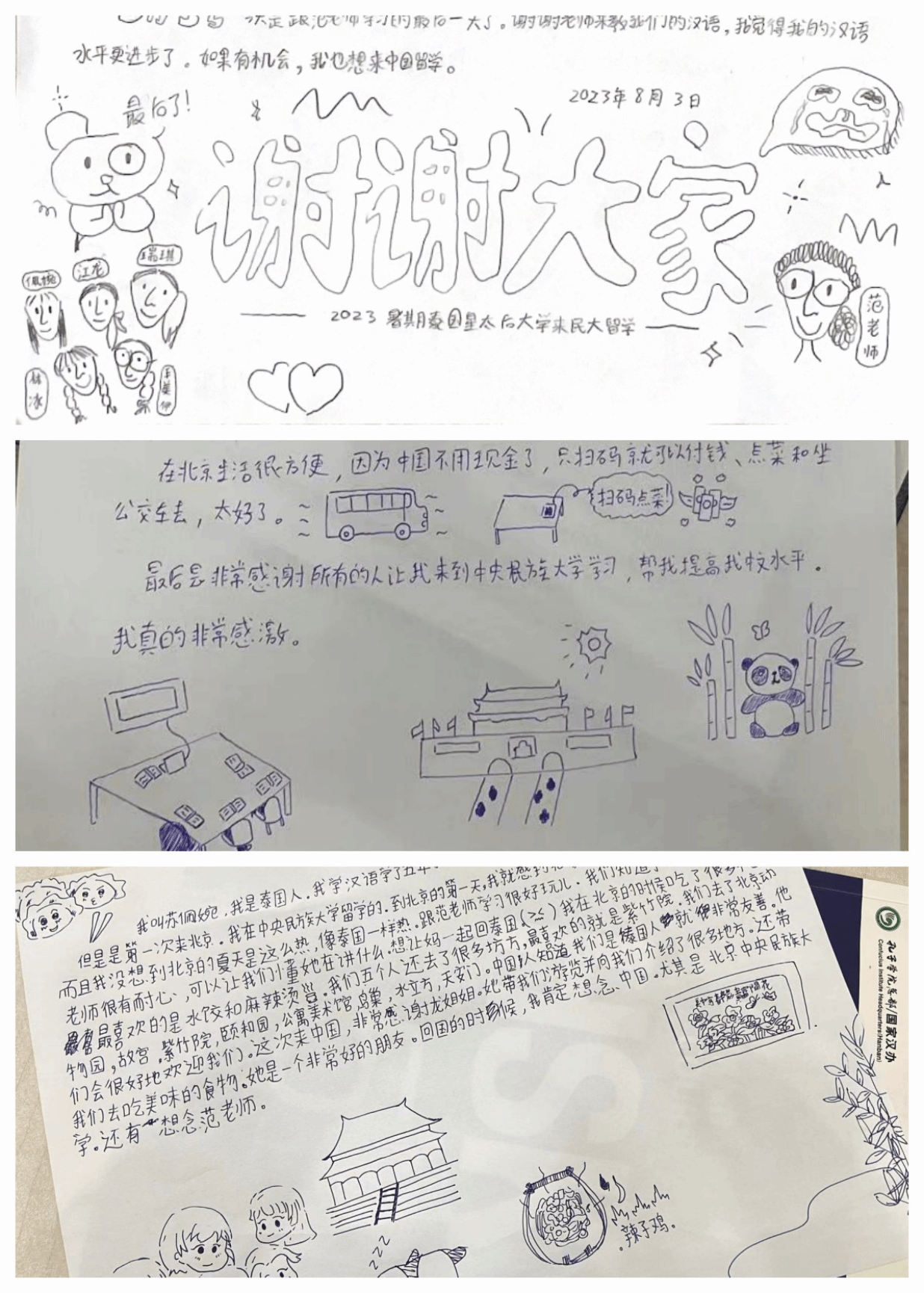 校园很漂亮,出入校门刷脸太有安全感了;王美伊同学说:“虽然在民族大学的留学时间非常短暂,但这段留学生活带给自己许多美好而难忘的回忆,学到了很多新知识,口语和阅读进步很大”;李江龙同学说:“这一个月去了好多地方参观,品尝了好多的中国美食,希望有机会再来情色小说