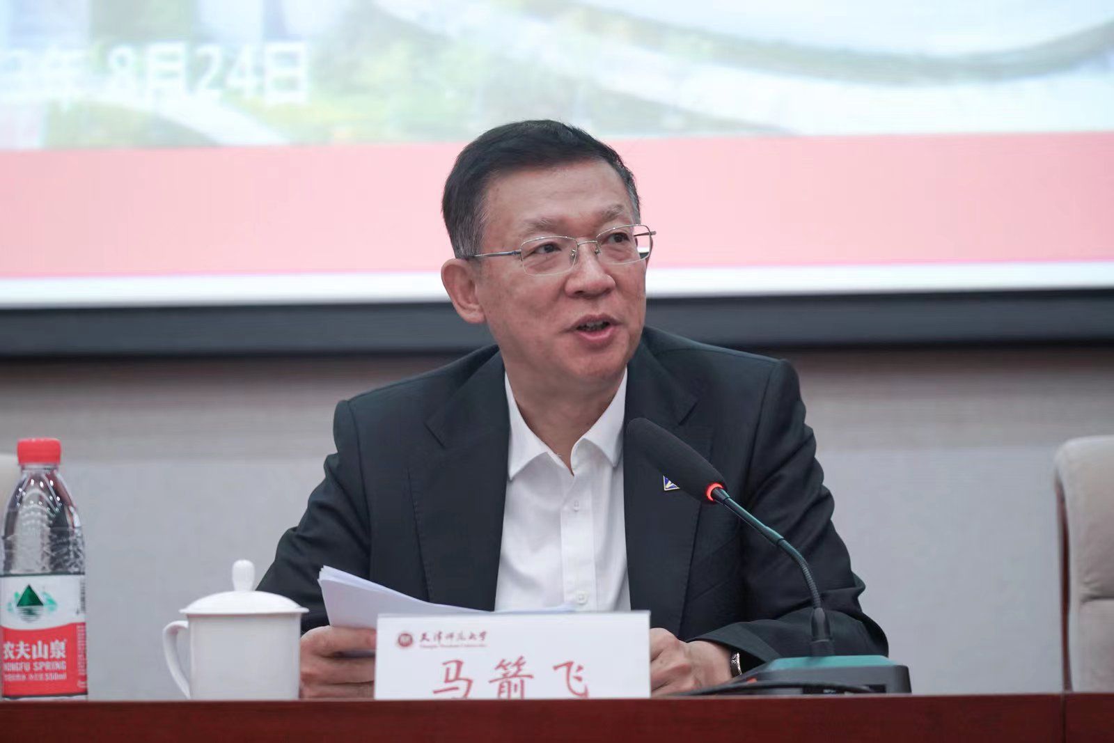 世界汉语教学学会会长、教指委副主任委员、天津师范大学校长钟英华出席并致辞。教育部中外语言交流合作中心党委书记、主任,教指委副主任委员马箭飞发表主旨讲话,他向参会教师介绍了新形势下国际中文教育发展成就以及新需求新趋势新要求,特别指出《中华文化与传播》课程应成为五门核心课程中的核心,要能够主动对接服务国家重大需求,主动促进人类命运共同体思想的海外认同,切实承担起立德树人的使命,培养能讲中国故事、会讲中国故事的复合型国际化融合型人才。