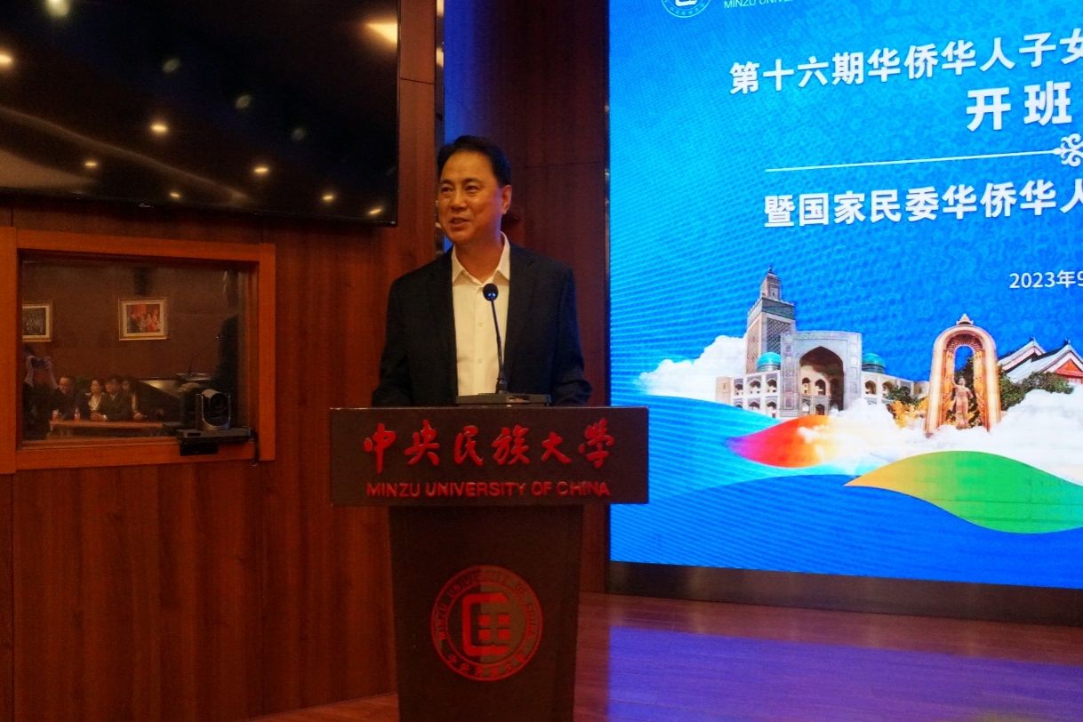 最后,国家民委协调推进司一级巡视员王海青讲话。他讲到,中国的发展举世瞩目,将不断扩大对外开放,积极向世界分享中国发展机遇,特别是新疆等西部地区处于面向中亚对外开放的前沿,在推动西部地区对外开放的历史进程中将发挥越来越重要的作用,这也使这个专门为华侨华人子女举办的中国语言文化学习班具有了更重要的历史使命和意义。他希望要总结好的经验,抓住机遇,谋划未来,切实将华侨华人子女中国语言文化学习班打造成培养服务国家“一带一路”建设高层次人才的基地。他勉励同学们要珍惜学习机会,努力学习,书写好自己更绚丽、更广阔的人生。