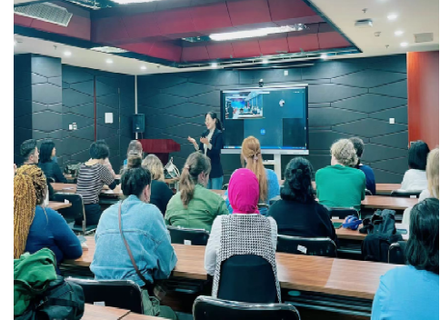 在报告厅举行了汉语进修生师生见面会。江傲霜副院长、语言进修与项目部负责人、一线教师和管理岗教师与学生进行了热情的交流。