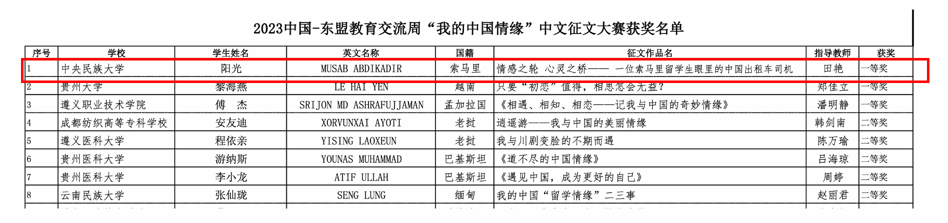 中国-东盟教育交流周中文征文大赛部分获奖名单