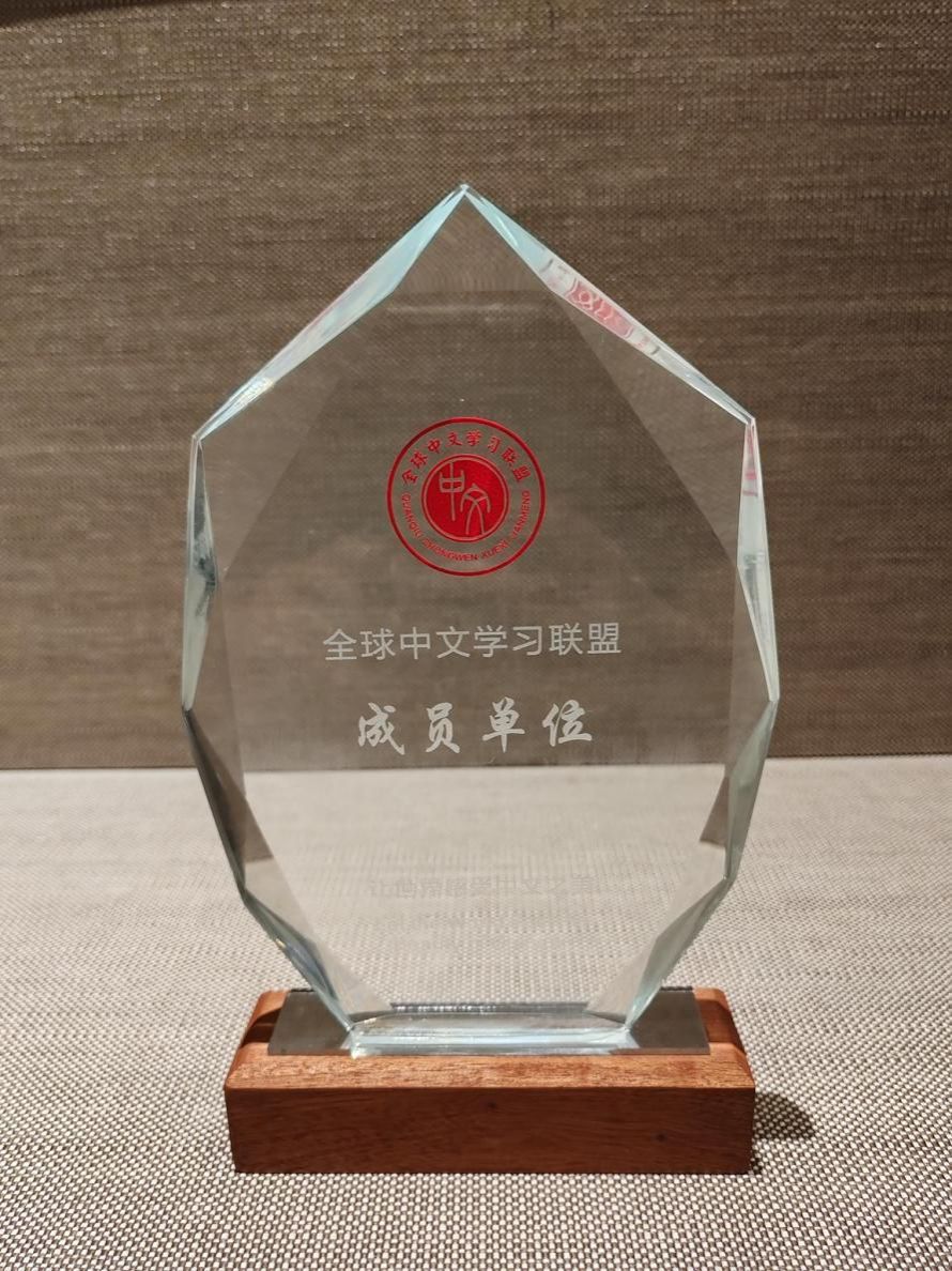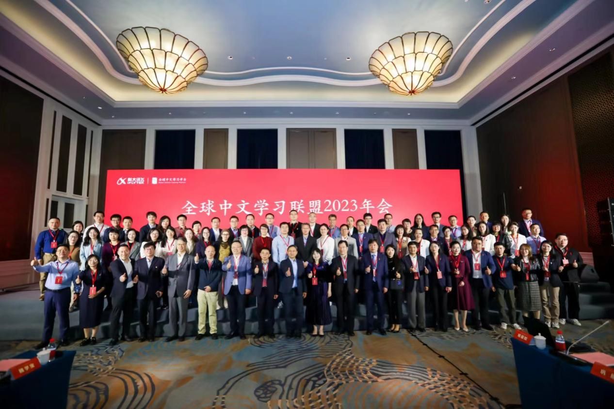 接受新增联盟成员授牌,并上台合影留念。2023年,全球中文学习联盟纳新融合,成员单位总数达到50家。