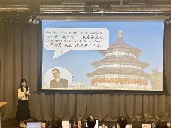 在决赛中,现任伦敦中医孔子学院志愿者教师的杜怡芬同学以“圣诞假期的旅行”为话题展开教学,设计了“小采访””谁是大侦探”等教学活动。整体设计较为流畅、教学节奏把握恰当,教学方式多样有效。以较强的亲和力和感染力,营造出贴近学习者生活的场景和轻松活跃的课堂气氛,赢得了评委老师的好评,也收获了宝贵的专业建议。