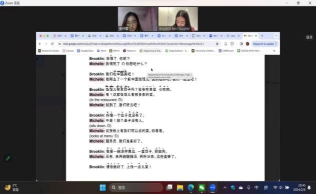 密西根大学的汉语辅导的活动开始前,每位辅导同学积极与所负责学生取得联系。活动正式开始后,大家认真备课、按时出勤,在每次辅导中与美国学生进行汉语练习,有效帮助学生巩固汉语知识。辅导结束后,同学们都表示颇有收获。此次汉语辅导的经历不仅丰富了大家的教学体验,还让大家更加懂得了如何针对学生不同的学习需求开展教学。
