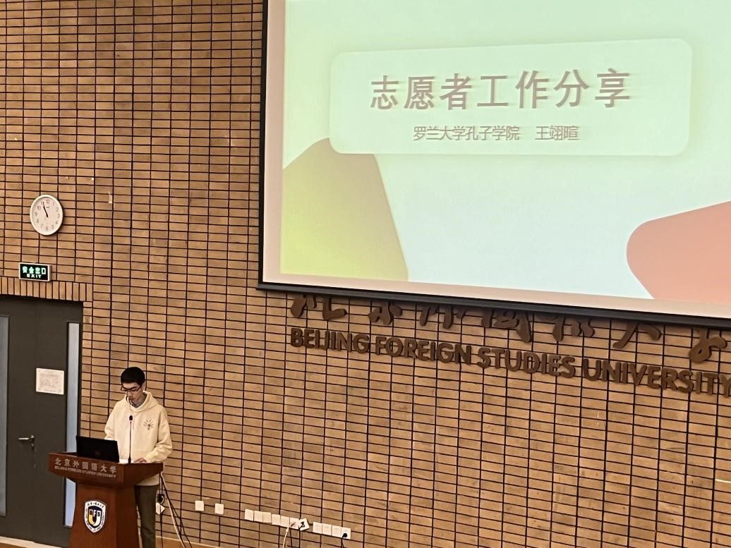 参观完展览后,同学们来到了国际中文教育志愿者分享会现场。分享会开场由北京外国语大学党委副书记贾德忠博士致辞。教育部中外语言合作交流中心副主任静炜博士也发表了致辞,强调了孔子学院作为推广中文教育、促进中外文化交流的重要平台所发挥的不可替代的作用,并向所有为国际中文教育事业奉献付出的志愿者表达了衷心的感谢。