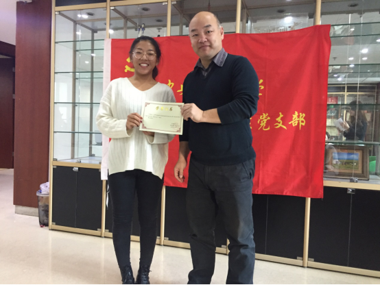 首先,研究生党支部书记张雪发言,她向我们介绍了第二届积极分子培训班开班的整个过程、教学内容、学员学习和考试情况,并宣布加桂欣、李梦、刘恬等五位学员顺利结课,加桂欣同学被评为优秀学员。接着,优秀学员加桂欣讲话,和我们分享了她在整个培训期间的进步,为自己能够成为一名优秀学员而感到光荣,并表示会继续努力,不断在思想上生活和学习上向党组织靠拢。
