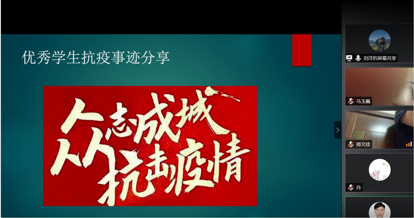 全体学生党支部集体在线上进行了抗击疫情中党员的优秀事迹的学习。