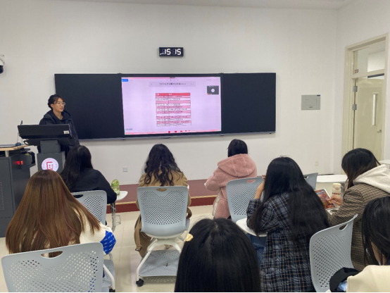 随后,2021级研究生党支部宣传委员覃可向党支部成员介绍了本学期的活动内容。在2021年秋季学期,党支部计划开展五次党史学习教育专题党课,同时将面对全体学生举办“七一”快答赛、“功勋之声”配音大赛等趣味性活动。