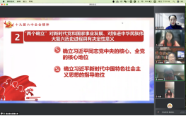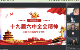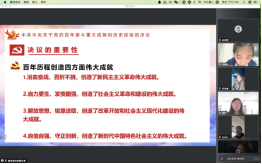 本科生党支部在线上开展了第五次“党员讲党课”系列学习活动。第五讲的主题为“献礼建党100周年——十九届六中全会”。党课由支部书记白照星同志主持,由支部党员赵佳雪、蔡尚君同志主讲,情色小说