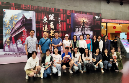 教工党支部组织支部党员前往国家大剧院观看话剧《北京法源寺》,开展主题党日活动。学院党委书记周铁海,副院长、党委副书记李锷,副院长江傲霜,教工党支部书记谷陵与20余名党员参与了本次活动。党员同志们一起参观了内部展览,了解大剧院发展史,并观看话剧《北京法源寺》。为加深交流、加强党群关系,党支部还邀请了入党积极分子、学生党员、教职工群众5人共同参与了本次活动。