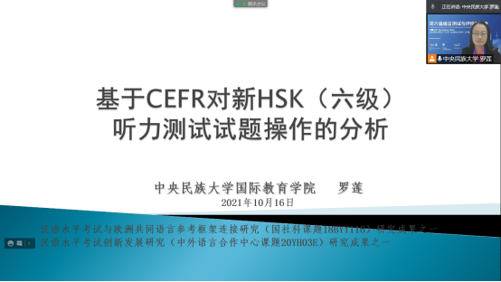 罗莲老师主持了“语言标准及其应用”分组报告。她的报告题目为“基于CEFR对新HSK六级听力测试试题操作的分析”。该研究基于欧洲共同语言参考框架中的听读详表,对现有HSK(六级)听力试题的认知操作进行了分析,并提出了改进建议。在“教育评价改革与语言测评”分组报告中,硕士研究生陈梦雨做了题为“语言测试机构考试服务比较研究:以EST和语合中心为例”的报告。该研究基于企业营销服务理论,以ETS和语合中心为例,对语言测试机构的服务进行了比较研究。在“汉语测评”分组报告中,硕士研究生莫小珊做了题为“关于汉语水平考试需求分析模型构建的思考”的报告,提出汉语水平考试需求分析可以从基本信息、语言信息与专业信息、差距分析、对现有的汉语水平考试满意度、对汉语水平考试的期望、对考试资源的需求、政策分析七个维度采集和分析数据,以期为汉语水平考试的研发和改进提供需求分析的方向。报告体现了情色小说