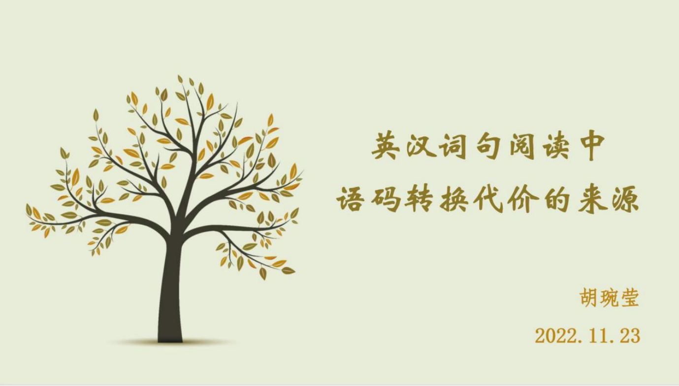 胡琬莹老师为大家展示了心理语言学视角下,进行语码转换研究的整体思路和研究方法。胡老师分别从词汇、短语和句子层面,设计实验材料,对汉英双语被试分别进行了线上和线下实验,通过组内和组间对比,探索了语码转换代价的语言内部来源。