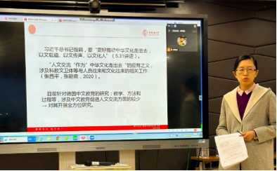 首先,余烁老师分享了研究《德国中文教育促进中德人文交流的功能、挑战及发展路径》。汇报从德国中文教育背景、发展现状及结构特征、功能体现、面临的挑战、发展路径及展望这五个部分展开。余烁老师汇报使大家对德国中文教育有了全面客观的认识。