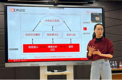 随后,梁燕老师分享了研究《输入加工与输出型教学方法的有效性及学习者语言学能和工作记忆对不同教学方法的影响》。梁燕老师首先回顾了不同教学方法的效果以及可能对教学产生影响的学习者个体差异因素,然后详细介绍了研究方法与实验过程,最后通过对数据的分析,给出了有针对性的教学参考意见。梁燕老师深入浅出的讲解,让大家对课堂教学法选择与使用有了新的认识。
