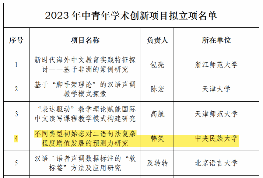 韩笑老师的课题“不同类型初始态对二语句法复杂程度增值发展的预测力研究”喜获立项。